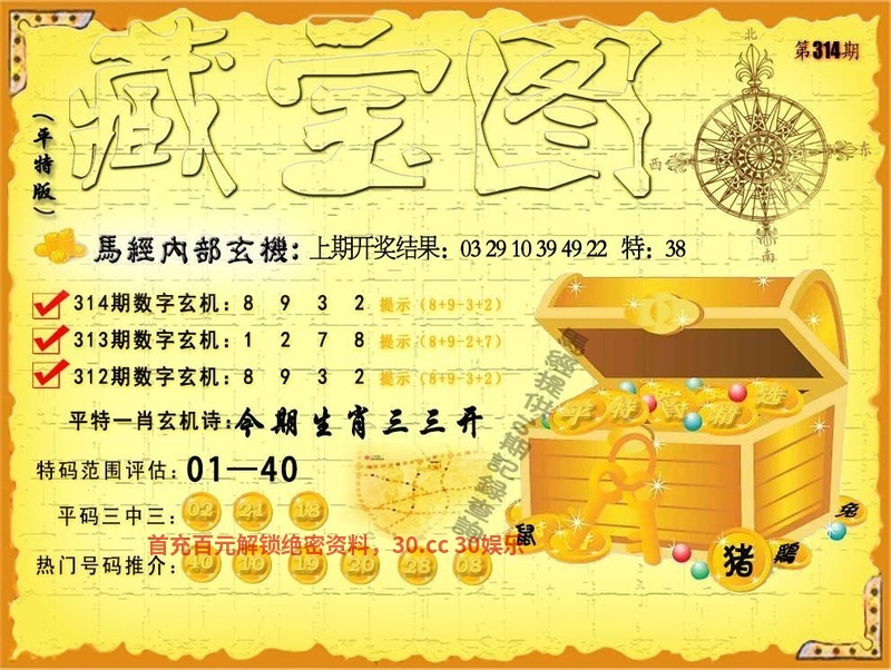314期:平特藏宝图玄机:【今期生肖三三开】 解:今期生肖三三开,解猪,平特猪 推荐平码:40.10.19.20.28.08 开奖结果:29.44.37.19.26.38T23 |
